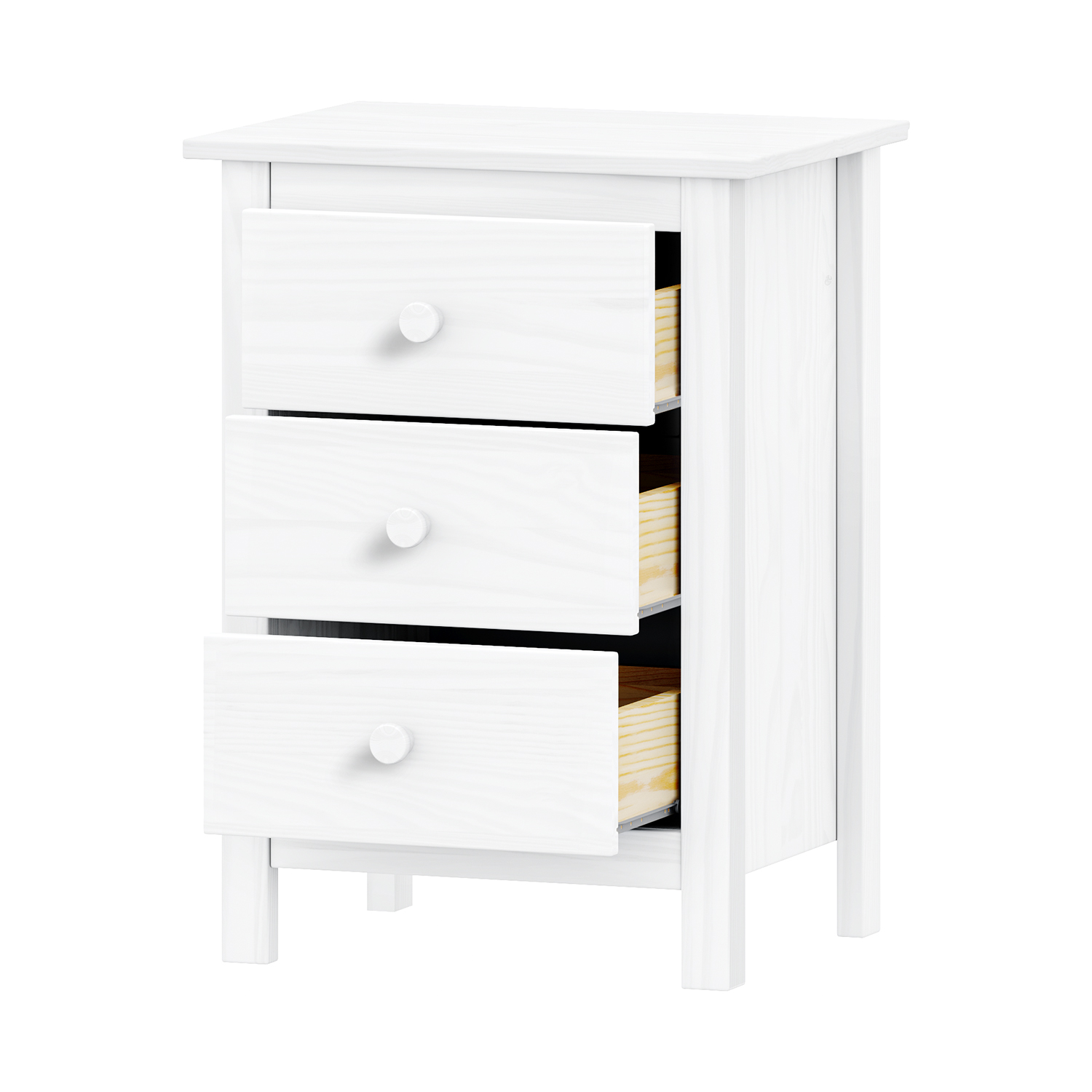 Termékkód: 8077Banyaga tömör fenyő, színe fehér lakk, 3 fiók fém futókkal, 1 polc