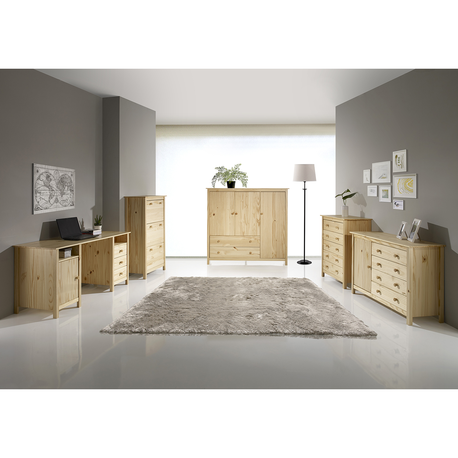 Termékkód: 8061anyaga tömör fenyő, lakkozott kivitelben3 fiók fémfutókkal, 3 tömör ajtó, 2 polca maximális terhelhetőségek az összeszerelési útmutatóban szerepelnek