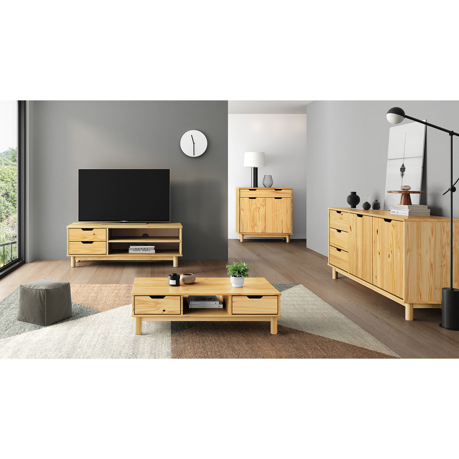 Termékkód: 324101Banyaga tömör fenyő, méz árnyalatban viaszolt2 fiók fém futókkal, 1 ajtó, 1 polcfurat a kábelvezetéshez