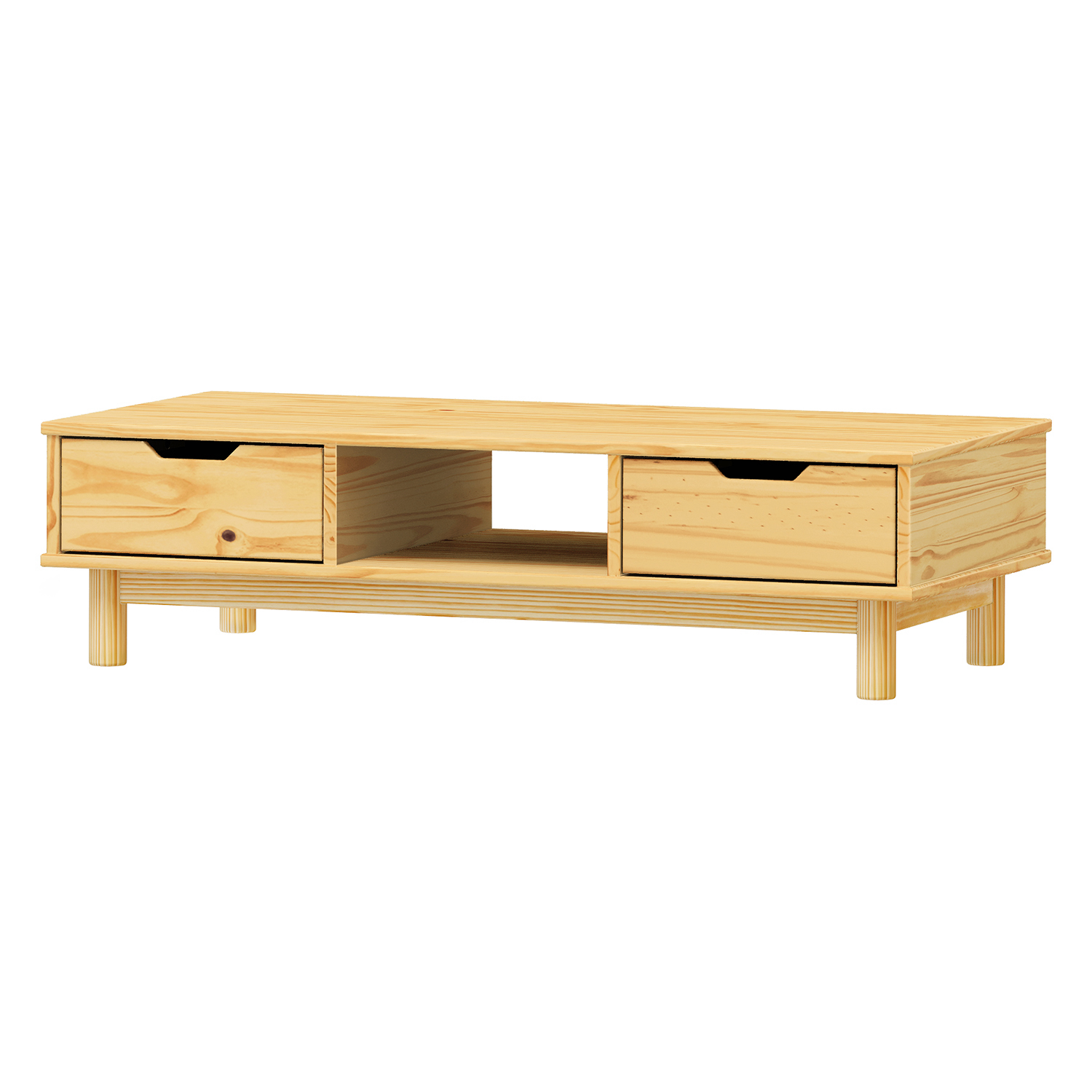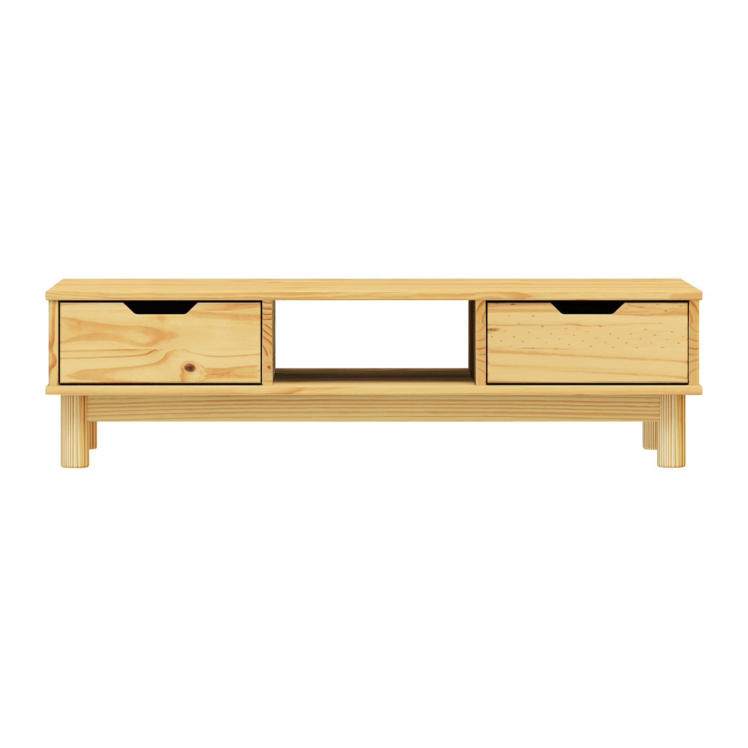 Termékkód: 324101Vanyaga tömör fenyő, lakkozott kivitelben2 fiók fém futókkal, 1 polcfurat a kábelvezetéshez