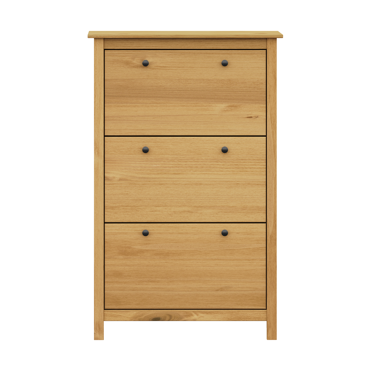 A TORINO viaszos cipőtartó ideális megoldás azok számára, akik a praktikumot természetes megjelenéssel és otthonos légkörrel szeretnék ötvözni otthonukban. Minőségi tömör fenyőfából készült, amelyet szilárdság, tartósság és gyönyörű famintázat jellemez. A viaszos bevonat kiemeli az anyag természetes textúráját, és meleg, mézes árnyalatot kölcsönöz neki. Ezáltal a cipőtartó nagyon természetesnek hat, és harmonikusan illeszkedik bármilyen enteriőrbe, legyen az rusztikus, vidéki vagy modern stílusú. A TORINO viaszból készült cipőtartó rengeteg helyet kínál a cipők és egyéb apró tárgyak tárolására, amelyeket rendezetten szeretne tartani az előszobában. A praktikus fedőlap táskák és kiegészítők tárolására is szolgálhat. Belül polcok segítenek rendet tartani, és könnyen hozzáférhet minden egyes pár cipőhöz. A masszív kivitelezésnek és a stabil konstrukciónak köszönhetően bízhat abban, hogy a cipőtartó állvány a mindennapi használat során is megállja a helyét. A viaszolt felület eleganciát kölcsönöz a bútornak, miközben megvédi a sérülésektől. A fém fogantyúk finom hagyományt kölcsönöznek a cipőtartónak, és kiegészítik a természetes megjelenést. Ez a darab bármelyik előszobát rendezett, meleg és hívogató térré varázsolhatja. A TORINO viaszos cipőtartó nemcsak tárolóhely, hanem stílusos kiegészítő is, amely egy kis természetességet és őszinte kézműves munkát hoz otthonába.