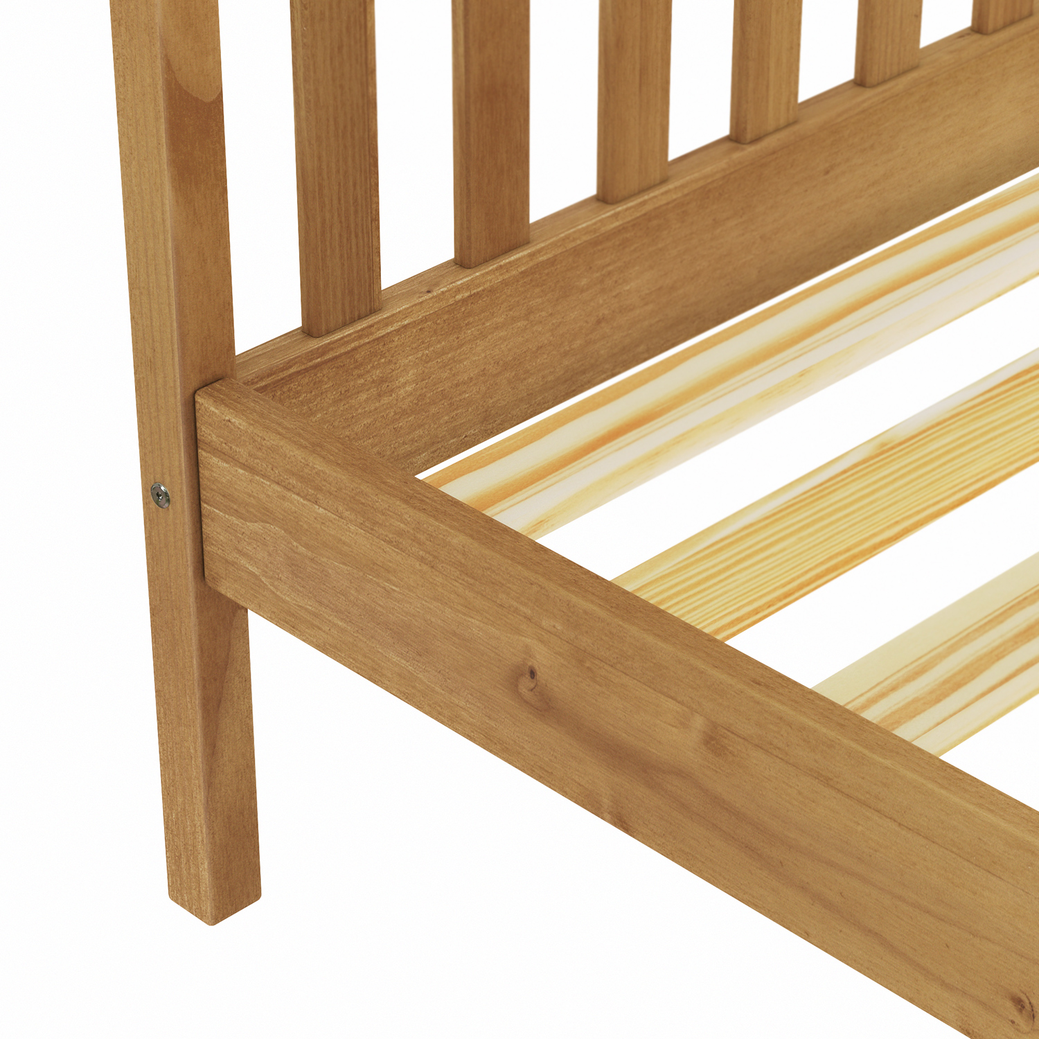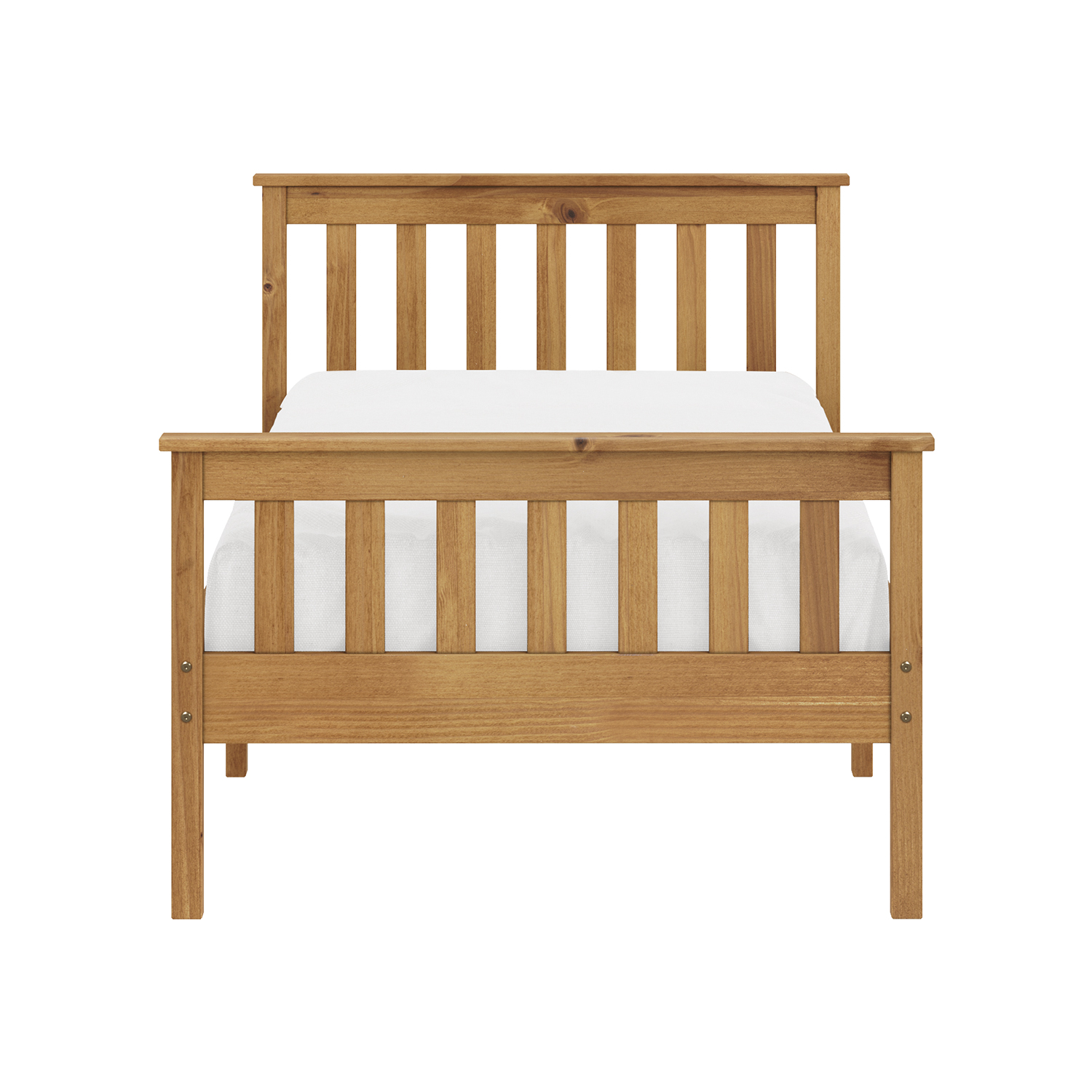 Termékkód: 8061Vanyaga tömör fenyő, viaszolt méz árnyalatban, fejmagasság 80 cm, ülésmagasság 38 cm, ár matrac és ágyrács nélkül, minimálisan ajánlott matracmagasság 15 cm, ajánlott matracméret: 90 × 200 cm és ágyrács R1, ajánlott teherbírás 120 kg-ig