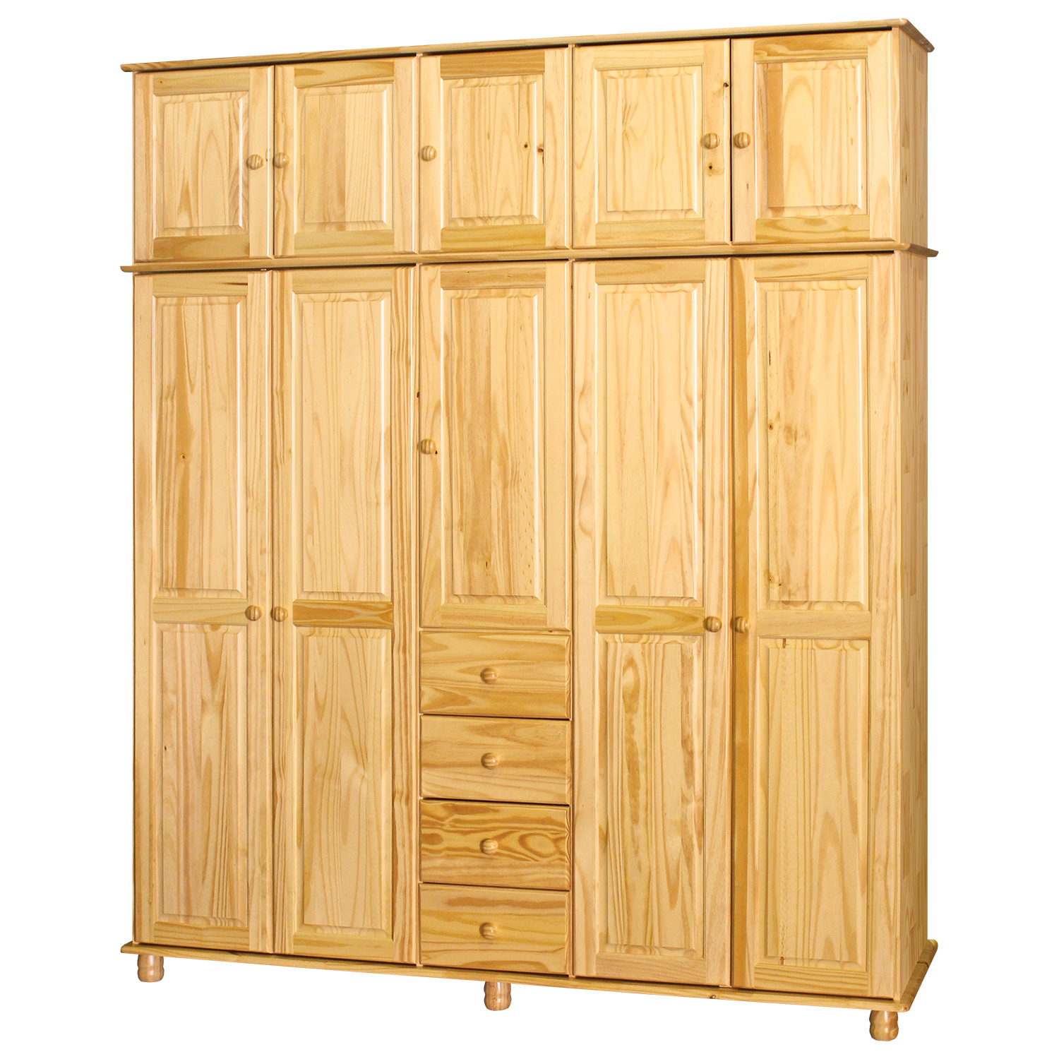 Még a 8854 5 ajtós szekrény tömör fenyőből is rengeteg ruhát és kiegészítőt kell tehermentesítenie. A megoldás a praktikus 5 ajtós bővítő 8855 szintén tömör fenyőből. A bővítmény gondoskodik a felesleges ruhákról, de akár egy komódot vagy komódot is helyettesíthet. Az ajtókkal ellátott tárolórekeszben szépen elrendezhet mindenféle dolgot, különösen azokat, amelyekre a legkevesebb szüksége van az év során, vagy amelyek összekeverednének a szokásos ruhák között. A bővítmény rendezetten a mennyezet közelében helyezkedik el. Törölközők, fürdőlepedők, takarók, ágyneműk, szezonális ruhák, csak Önön múlik, mire használja a hosszabbítót. De biztosan hálás lesz a rendezett szekrényért, amellyel értékes időt takaríthat meg.