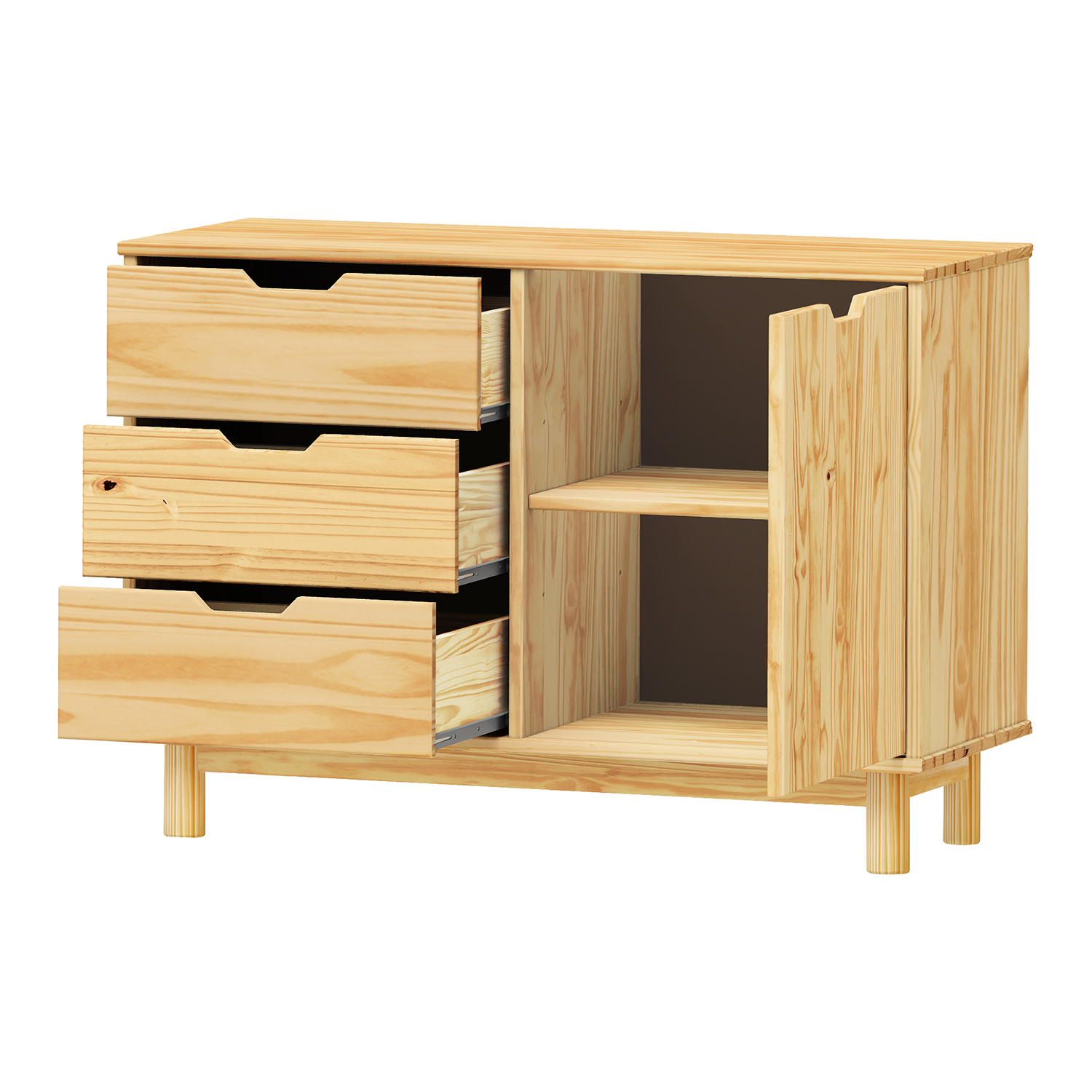 Termékkód: 32434Banyaga tömör fenyő, méz árnyalatban viaszolt3 fiók fém futókkal, 1 ajtó, 1 polc