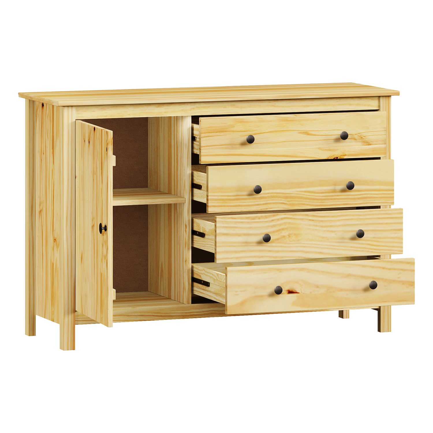 Termékkód: 68062Kanyaga tömör fenyő, lakkozott kivitelbenfém fogantyúk fekete sárgarézből4 fiók fémfutókkal, 2 tömör ajtó, 1 polc