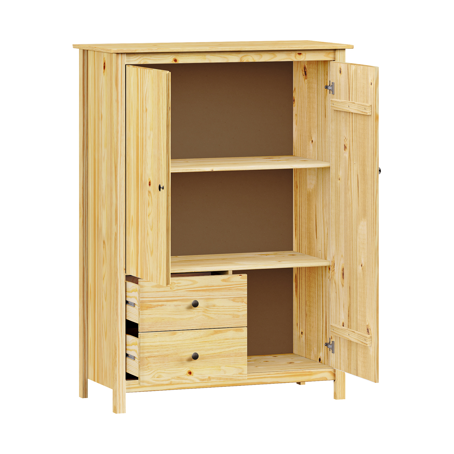 Termékkód: 8061Kanyaga tömör fenyő, lakkozott kivitelbenfém fogantyúk fekete sárgarézből3 fiók fémfutókkal, 3 tömör ajtó, 2 polca maximális terhelhetőségek az összeszerelési útmutatóban szerepelnek