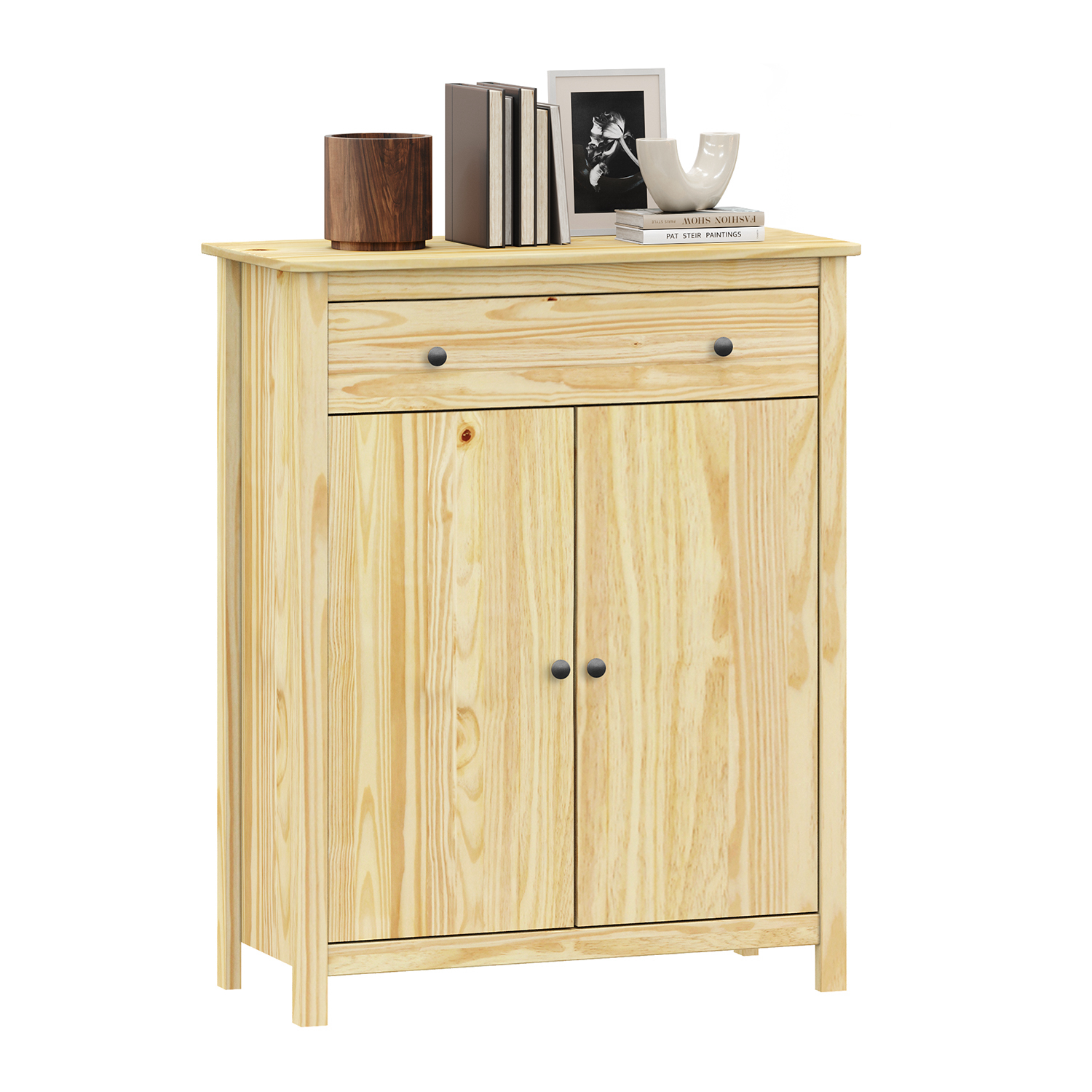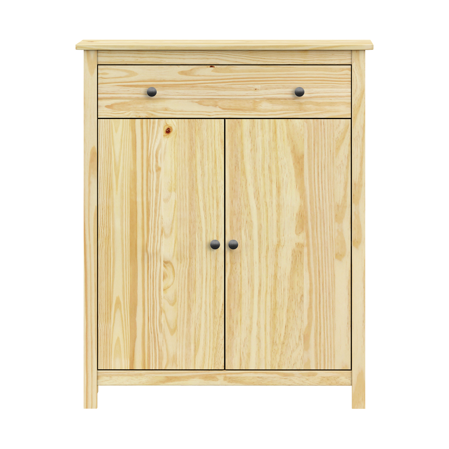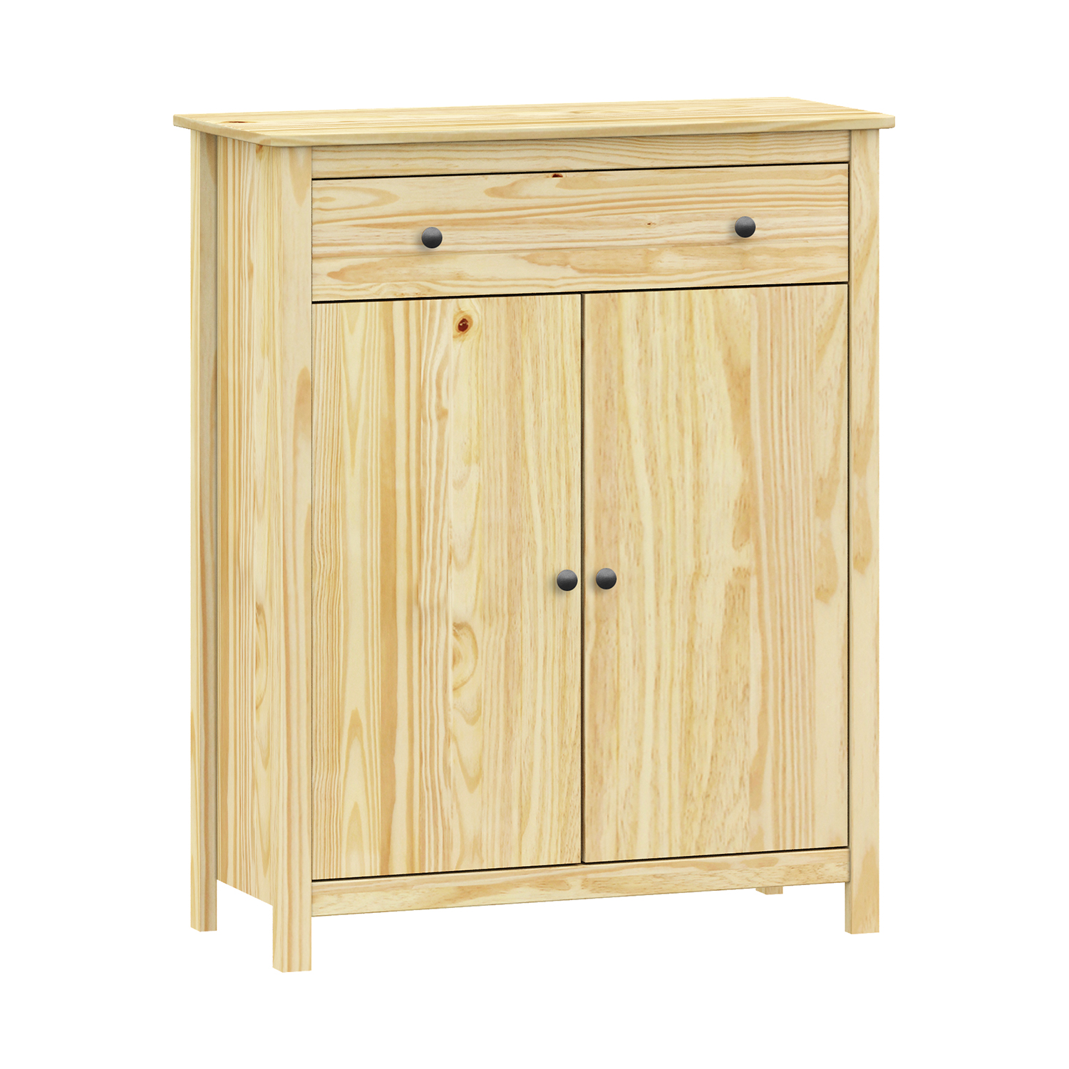 Termékkód: 68062Kanyaga tömör fenyő, lakkozott kivitelbenfém fogantyúk fekete sárgarézből4 fiók fémfutókkal, 2 tömör ajtó, 1 polc