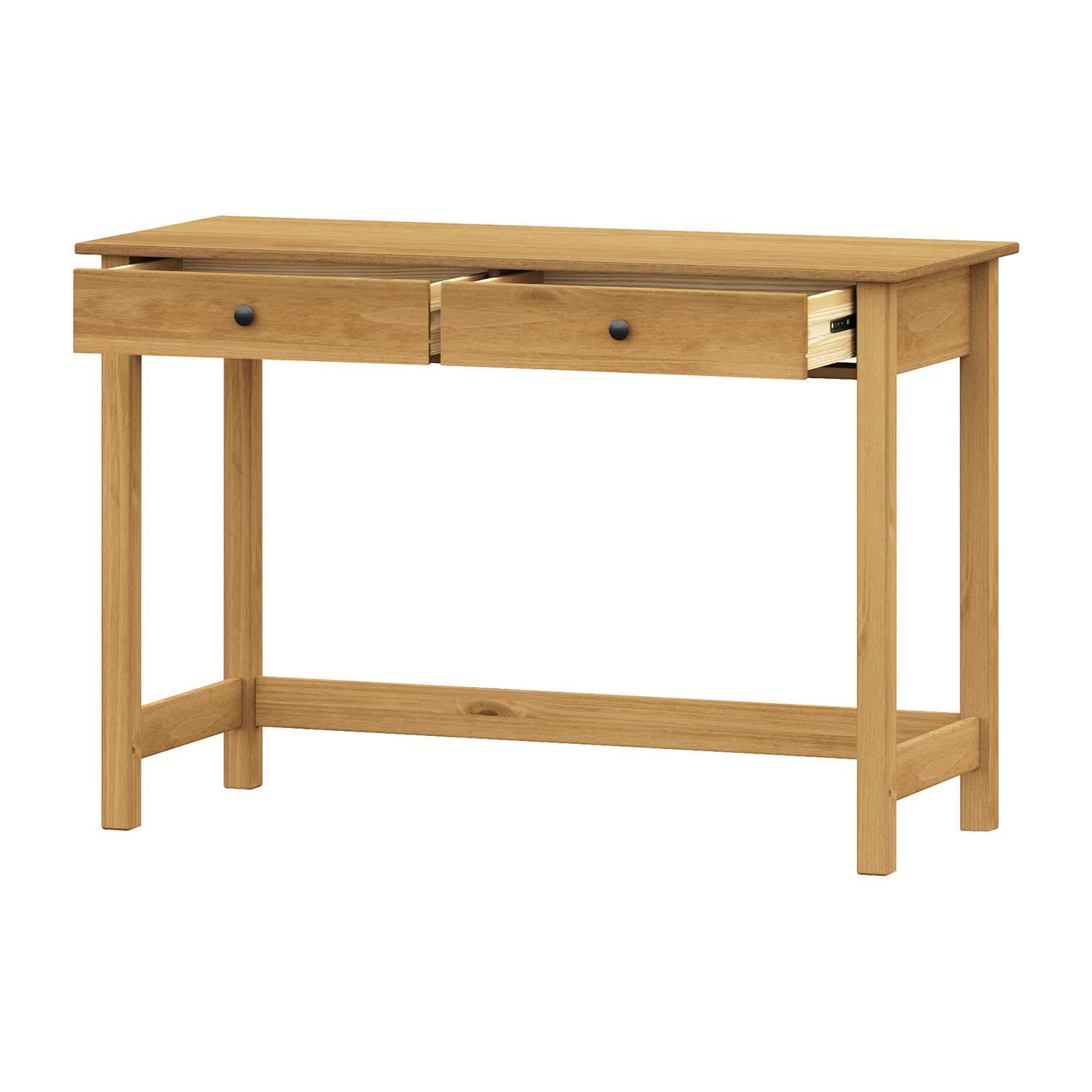 anyaga tömör fenyő, méz árnyalatban viaszolt fém fogantyúk sárgarézből 2 fiók fém futókkal