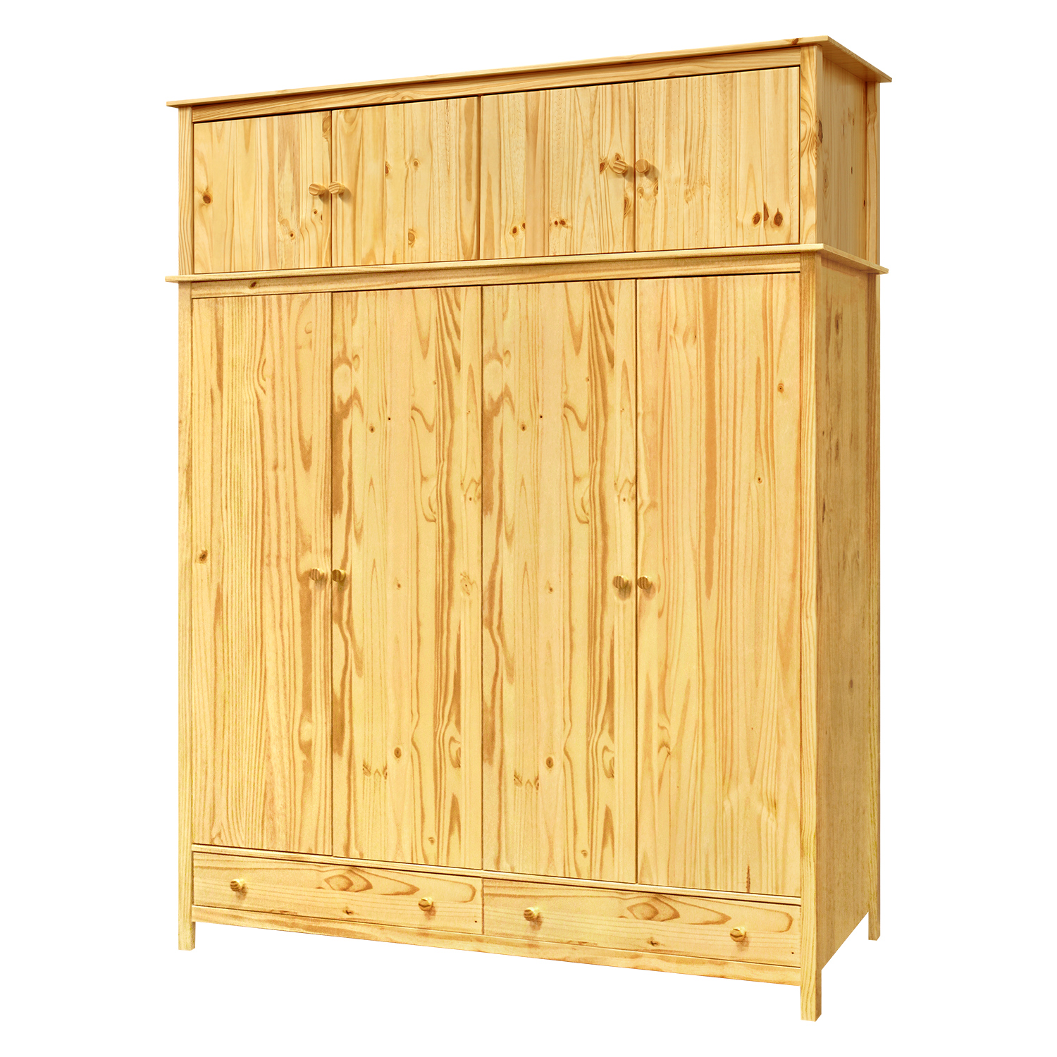 A szép és tágas gardróbszekrény mindenki álma, akinek több ruhadarabja van. A TORINO 4 ajtós gardróbszekrény elegendő helyet kínál a felsőruházat tárolására. Klasszikus tömör fenyőfa kivitelben készült. A helyiség két részre van osztva. A bal oldali felében egy szekrényrúd és egy polc a kalapok számára. A jobb oldali felében 3 polc található. Az alsó részen 2 fiók található fém futókkal, ahol tárolhatja a kiegészítőket vagy az alsóneműt. A többi ruhát aztán a polcokba gyömöszölheti, a fogasokra pedig kabátokat, ruhákat vagy ingeket akaszthat. Külsejének köszönhetően tökéletesen illik majd a nyaralójába vagy a faházába is. Azonban egy modern otthonban is örömöt okozhat.