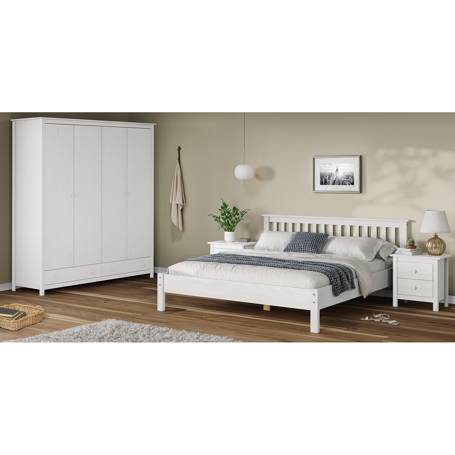 Termékkód: 8180Banyaga tömör fenyőfa, színe fehér lakkaz ár a rácsot tartalmazza (fa lécrácsos) matrac nélkülajánlott matrac mérete 180 × 200 cm vagy 2 darab 90 × 200 cm