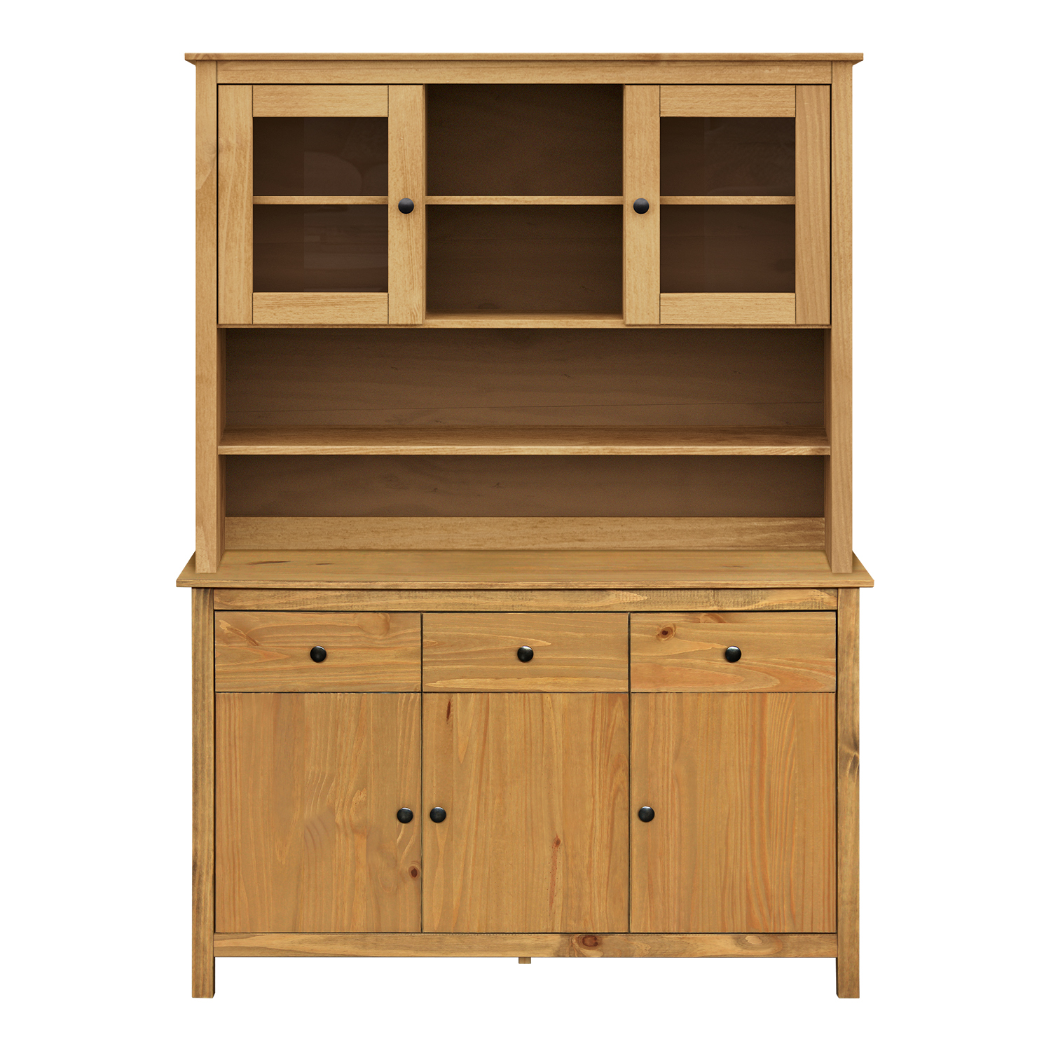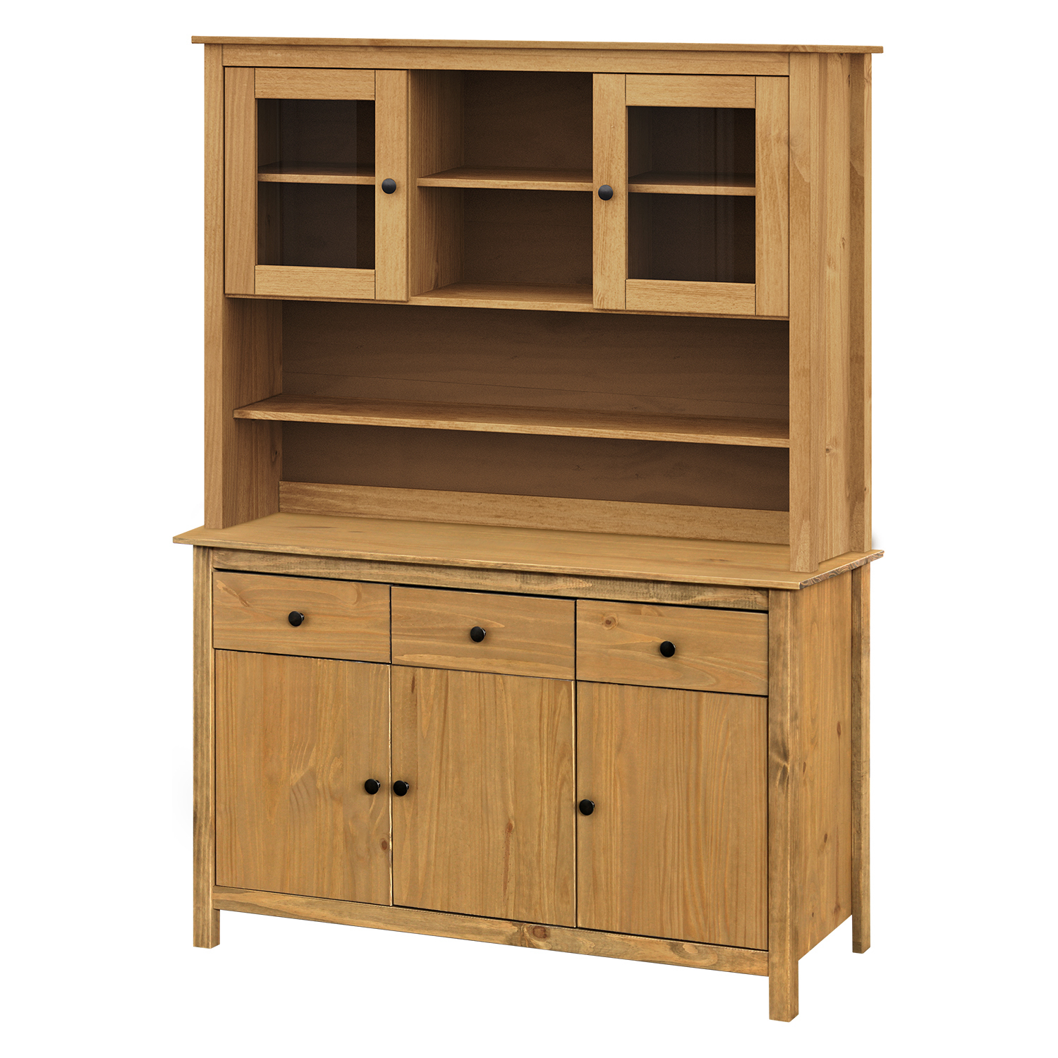 Termékkód: 8091Vanyaga tömör fenyő, méz árnyalatban viaszolt fém fogantyúk sárgarézből 2 fiók fém futókkal, 2 tömör ajtó, 1 polc felső kredenc része 8096V