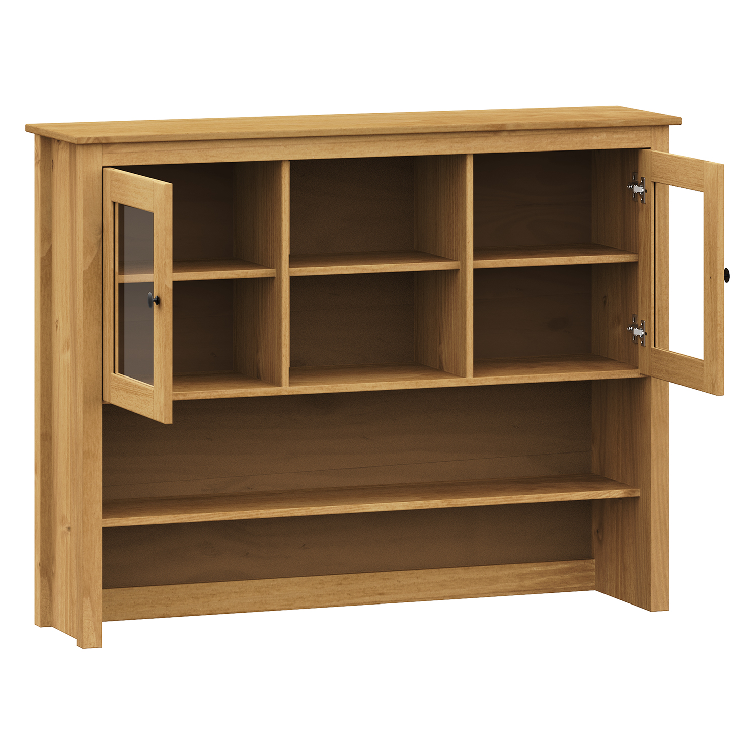 Termékkód: 8060Vanyaga tömör fenyő, méz árnyalatban viaszoltfém fogantyúk feketére festett sárgarézből2 üvegajtó, 2 polca maximális terhelhetőségek az összeszerelési útmutatóban szerepelnek