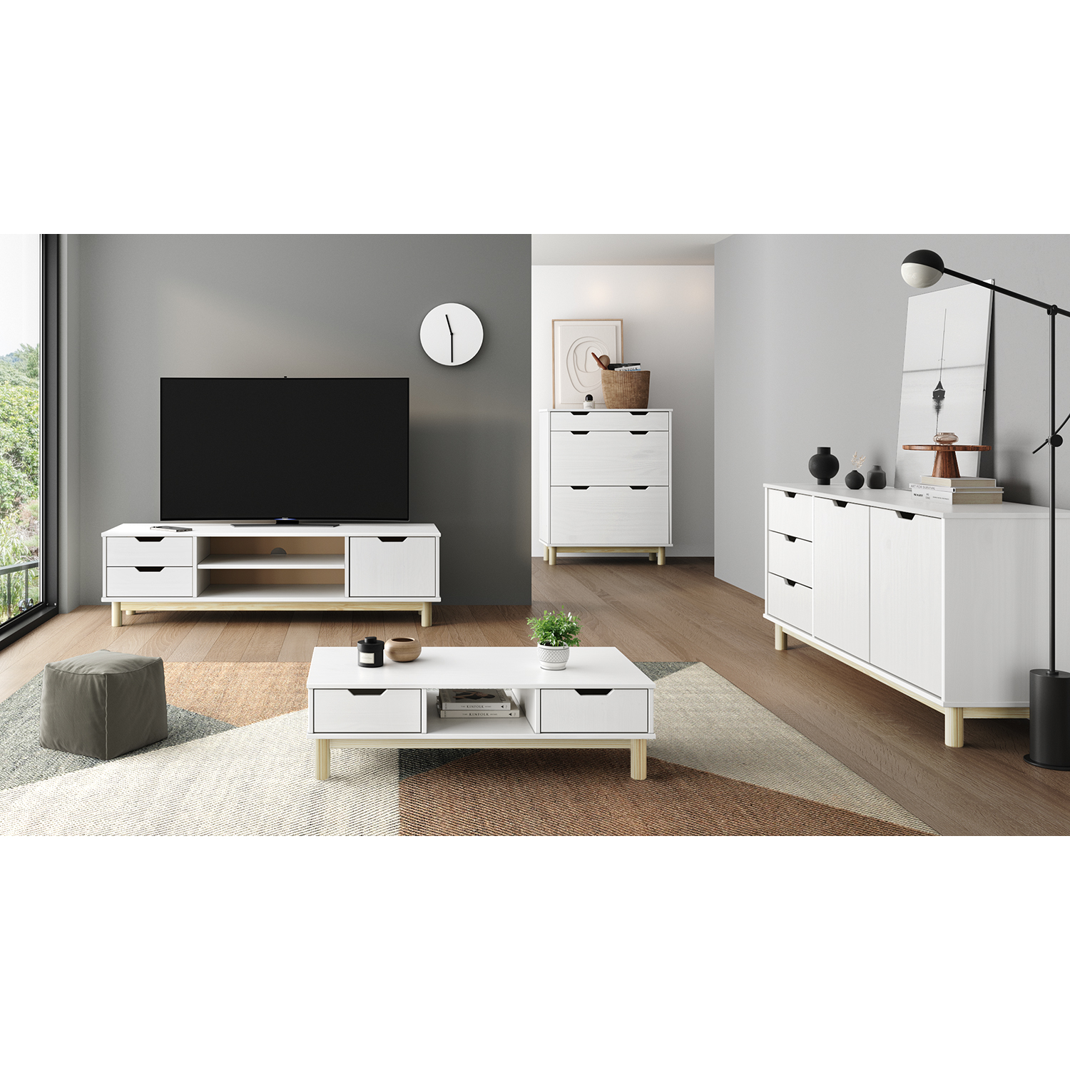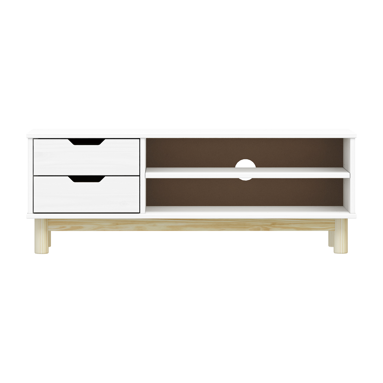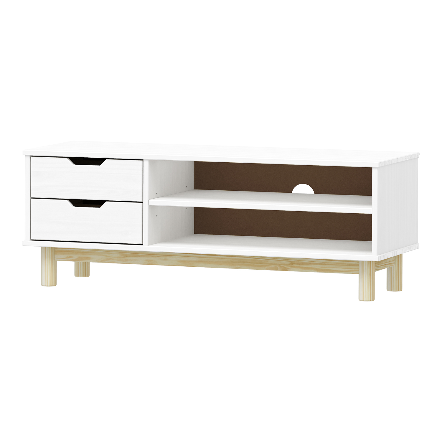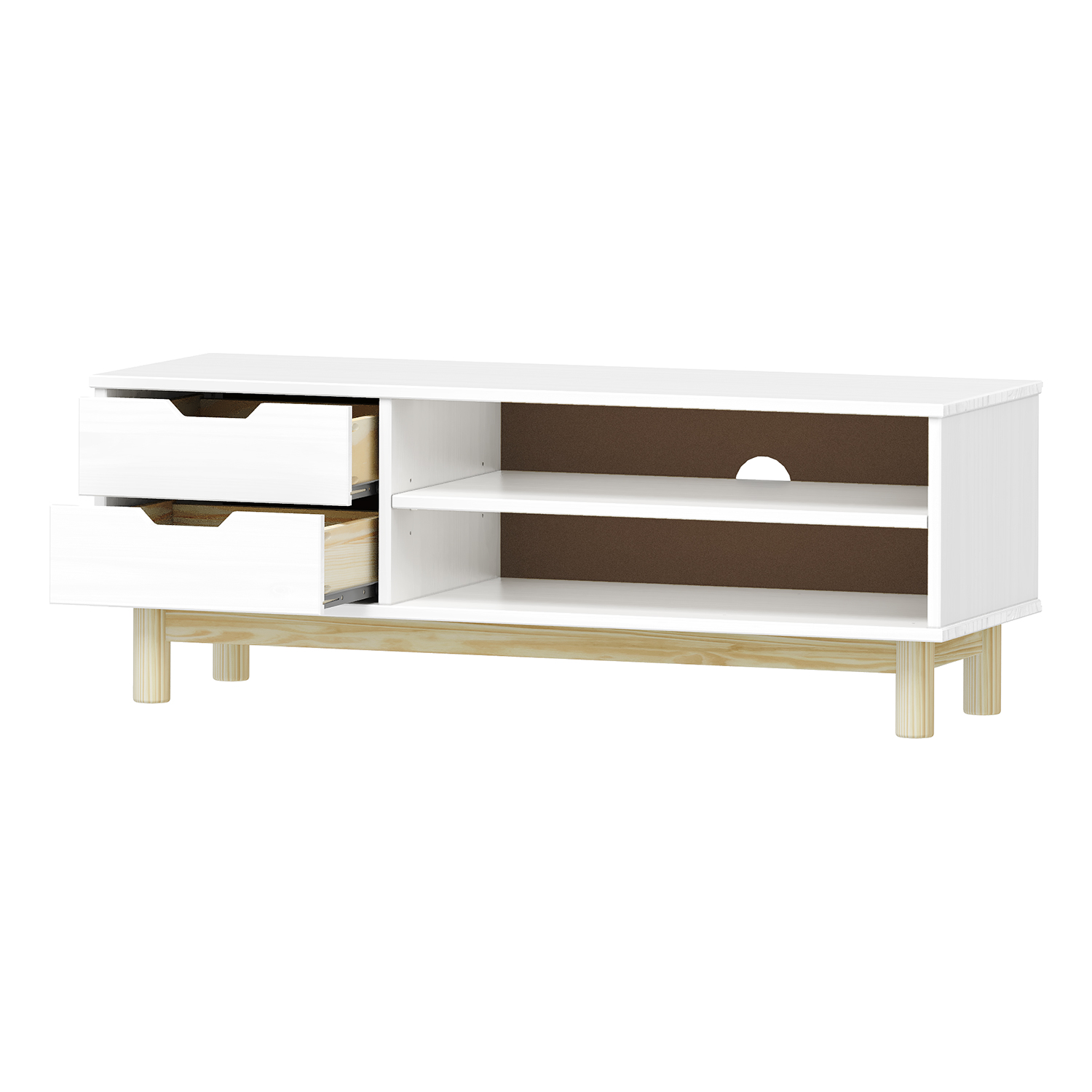 Termékkód: 324101anyaga tömör fenyő, színe fehér lakk2 fiók fém futókkal, 1 ajtó, 1 polcfurat a kábelvezetéshez